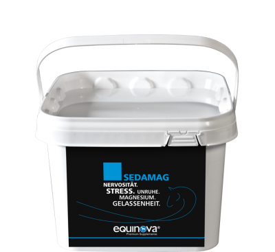 equinova® SEDAMAG weist einen hohen Magnesiumgehalt auf. Magnesium ist im Pferdeorganismus essentiell für zahlreiche Enzyme im Nerven- und Muskelgewebe. Zusätzlich sind ausgewählte B-Vitamine sowie die essentielle Aminosäure L-Tryptophan enthalten.