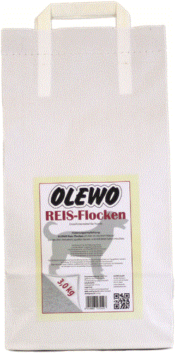 OLEWO Reis-Flocken sind ein leicht bekömmliches Ergänzungsfutter für die Frischfleischfütterung oder für sensible und ältere Hunde.