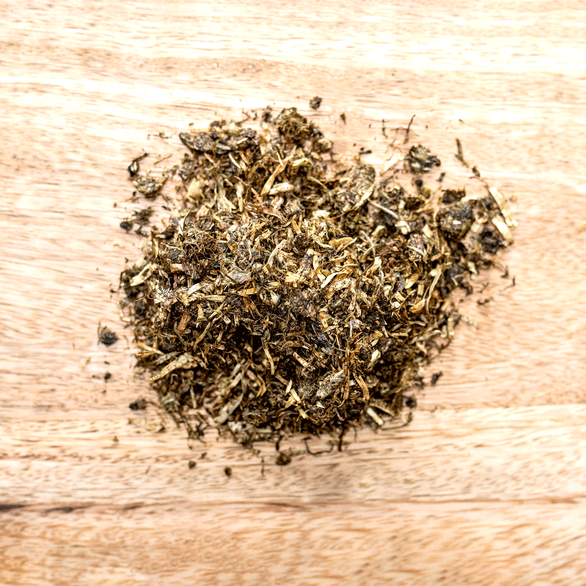 Wiesengräser, -kräuter und Leguminosen (warmluftgetrocknet), Ölmischung kaltgepresst (Lein-, Sonnenblumenöl), Kräuter (Kamille, Fenchel, Pfefferminze), Essig, Sonnenblumenblüten, Kornblumenblüten, Ölsaaten fein gecrackt (Leinsamen, Sonnenblumenkerne)