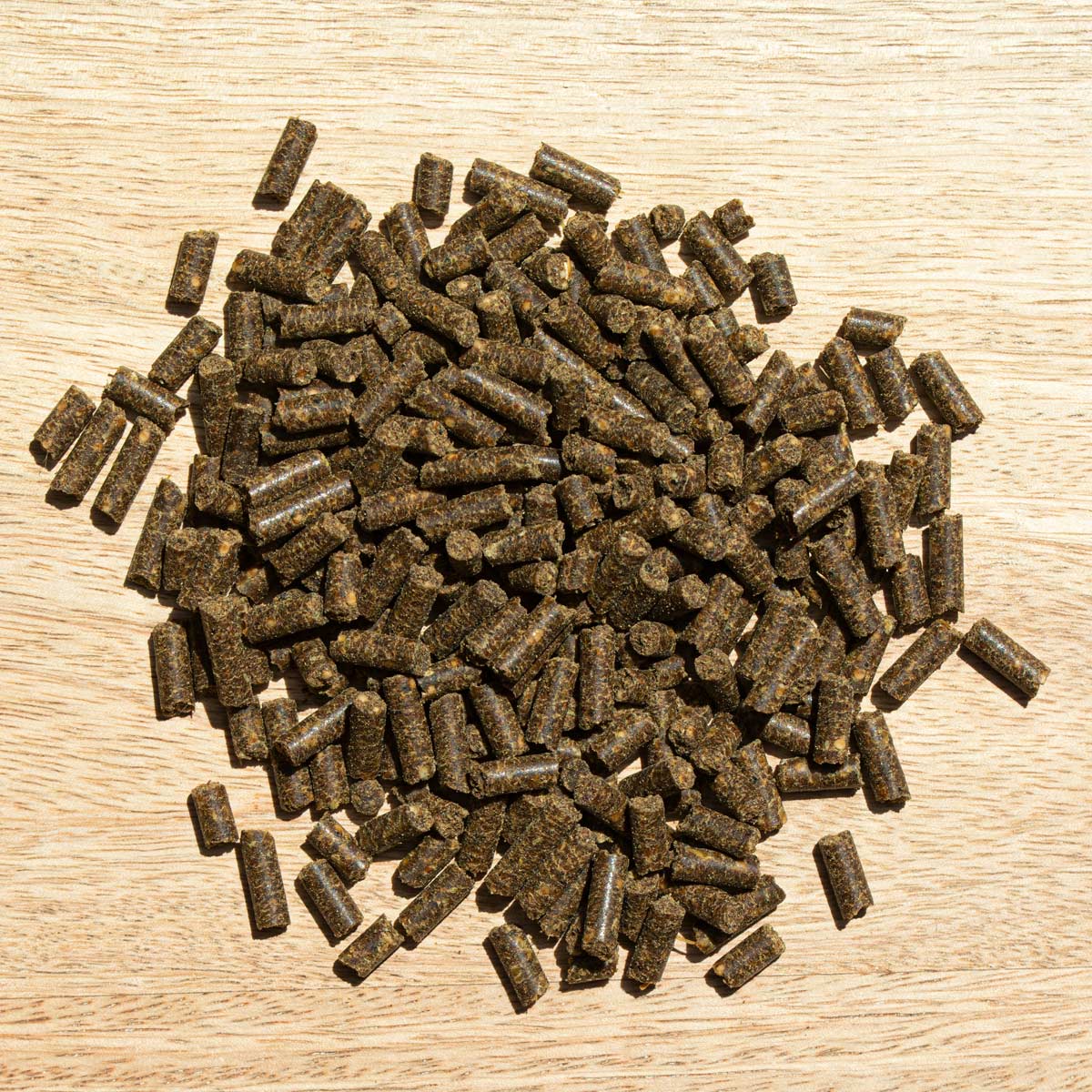 Bierhefe 30 % (davon 1 % Hefeerzeugnisse (reich an RNA und Nukleotiden)), Weizenkleie (hefefermentiert), Ölkuchenmischung (Leinsamen, Sonnenblumenkerne) 9 %, Ölmischung kaltgepresst (Lein-, Sonnenblumenöl) 7 %, Obsttrester (Apfel/Traube), Süßkartoffeln, Malz-Hefe-Würze (fermentiertes Malz, fermentierte Hefe, inaktiviert), Magnesiumfumarat/-lysinat, Kräuter (Ingwer, Kurkuma, Fenchel) 1,2 %, Gerstenkeime, zertifizierte Pflanzenfutterkohle, Essig, Zichorien-Inulin