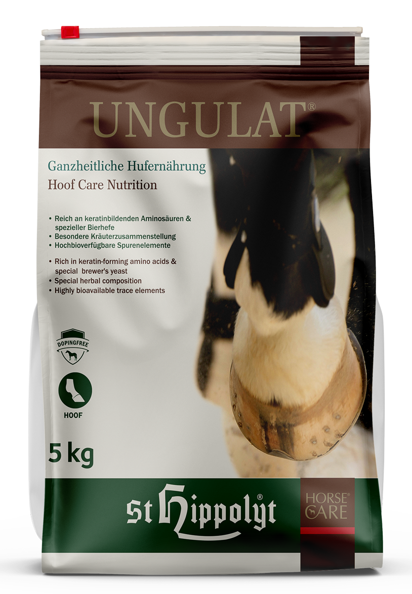 Ungulat® kombiniert die Vorteile spezieller fermentierter Bierhefe als Quelle von B-Vitaminen, Biotin und Nukleotiden (funktionelle Zellbausteine), keratinbildender Aminosäuren, enzymreicher Getreidekeime sowie hochbioverfügbarer, liposomal verkapselter Spurenelemente. Mineralische Stoffe wie Zink, Mangan, Kupfer, Eisen, organische Schwefelverbindungen, Silizium und Calcium sind für das Hufhorn wichtige festigende Strukturbestandteile. Durch die liposomale Verkapselung der Spurenelemente wird die Bioverfügbarkeit maßgeblich gesteigert. Nutritive Bestandteile wie Knoblauch, ungesättigte Fettsäuren, Traubenkernmehl und weitere Gefäßschutzfaktoren verbessern die Fließfähigkeit des Blutes, wodurch speziell der Nährstofftransport gefördert wird. Wissenschaftlich erwiesen werden konnte eine Verbesserung des Hornwachstums, eine bessere Nährstoffaufnahme und ein optimierter Stofftransport in den Huf, wodurch die Hufqualität nachhaltig verbessert wird. "