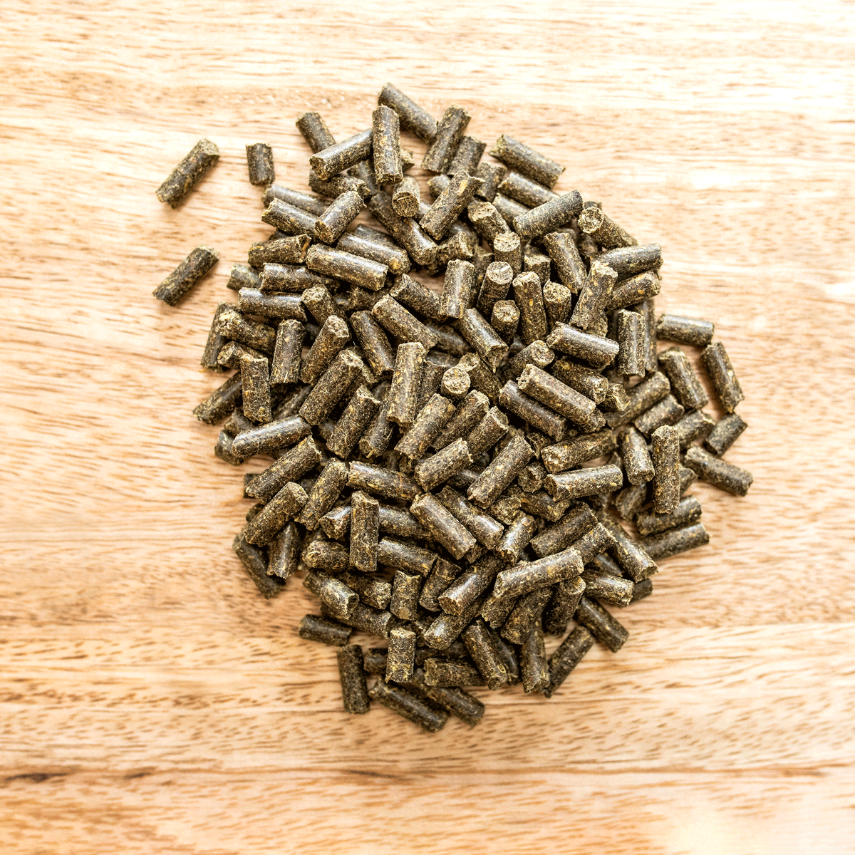 Luzerne, Bierhefe, Ölsaaten fein gecrackt und Ölkuchenmischung (Leinsamen, Sonnenblumenkerne) 13 %, Kräuter (Bockshornkleesamen, Ackerschachtelhalm, Brennnessel, Kamille, Fenchel; Pfefferminze, Thymian, Rosmarin) 8 %, Malz-Hefe-Würze (fermentiertes Malz, fermentierte Hefe, inaktiviert), Hirse (lactofermentiert), Ölmischung kaltgepresst (Lein-, Sonnenblumenöl) 6 %, Maiskeime, Calciumcarbonat (maritim), Obsttrester (Apfel/Traube), Weizenkleie, Knoblauch, Reiskleie, Spirulina-Algen, Magnesiumfumarat/-sulfat (wasserfrei), Rübentrockenschnitzel, Seealgenmehl, Karotten, Essig, PalaSyrup (Isomaltulosemel.), Natriumchlorid, Ingwer, Hefeerzeugnisse (reich an RNA und Nukleotiden), Zichorien-Inulin