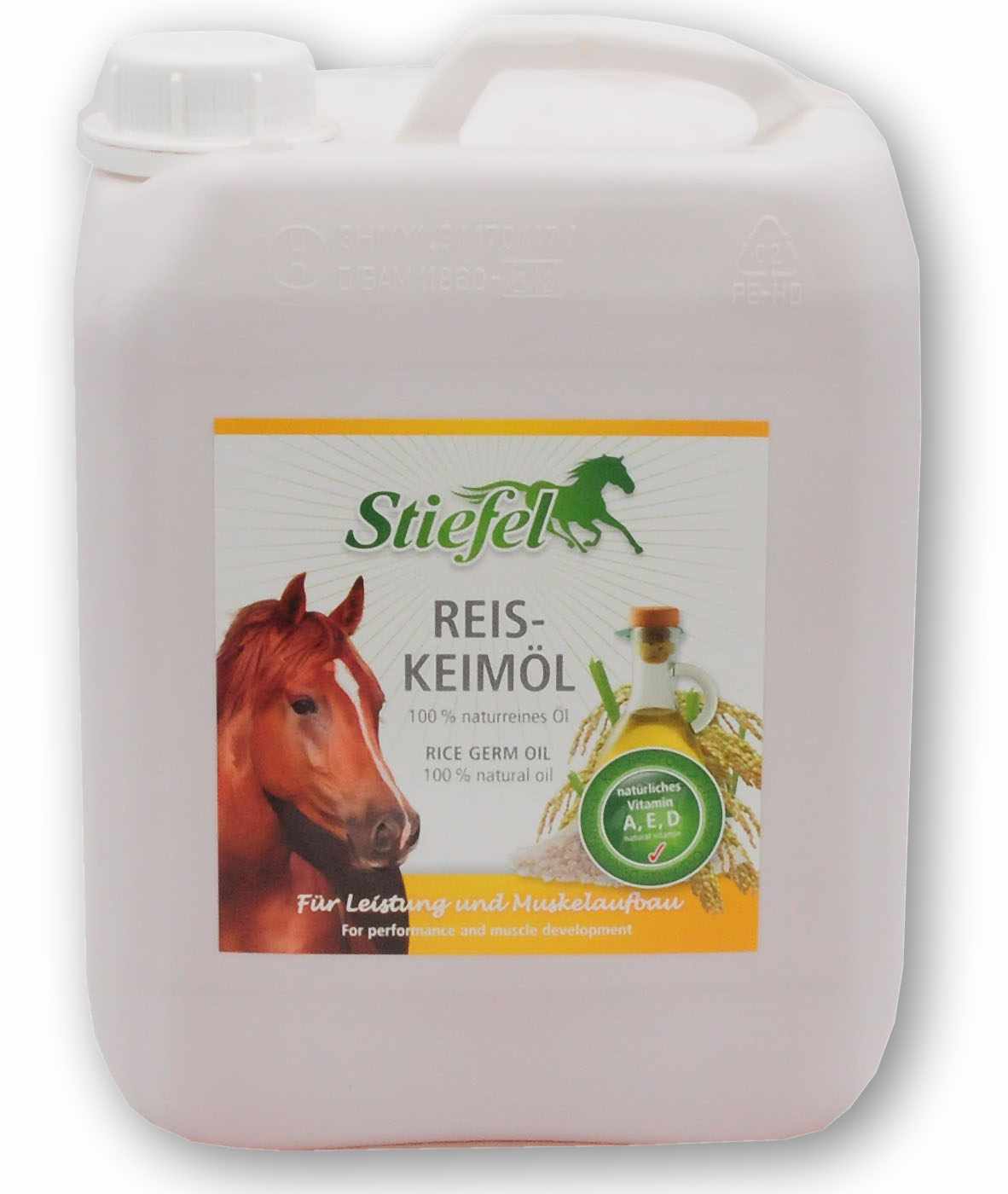Stiefel Reiskeimöl kann durch das enthaltene, natürliche Gamma-Oryzanol den Muskelaufbau unterstützen und zur Verbesserung der Leistungsbereitschaft beitragen. Das geschmacksneutrale Öl ist zudem reich an essentiellen Fettsäuren und natürlichem Vitamin E. Essentielle Fettsäuren kann das Pferd nicht selbst herstellen, daher müssen diese über die Nahrung aufgenommen werden. Vitamin E kann die Bildung von Sauerstoffradikalen verhindern und damit antioxidativ wirken. Vitamin E ist ebenso für den Muskelstoffwechsel wichtig und kann die Regeneration der Muskelzellen nach Beanspruchung unterstützen und fördern. Stiefel Reiskeimöl eignet sich zur Aufwertung der täglichen Futterration für Sport- und Leistungspferde, kann aber auch bei schwerfuttrigen Pferden eingesetzt werden.